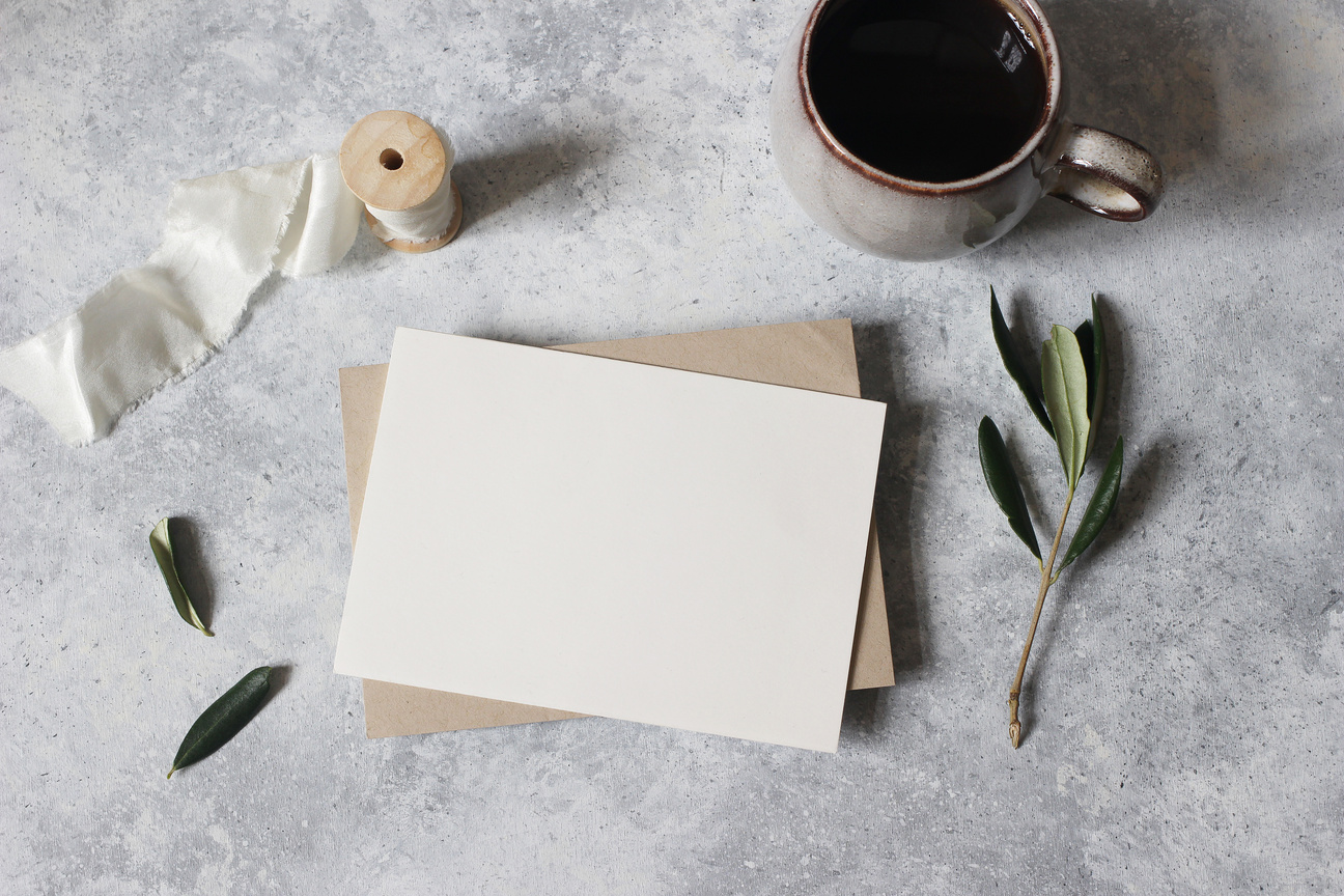 Swirly lines, ‘A Little Letter’ brand greeting card, titled, ‘Good Luck’. Printed inside, ‘Congratulations!’. Handwriting, cursive.